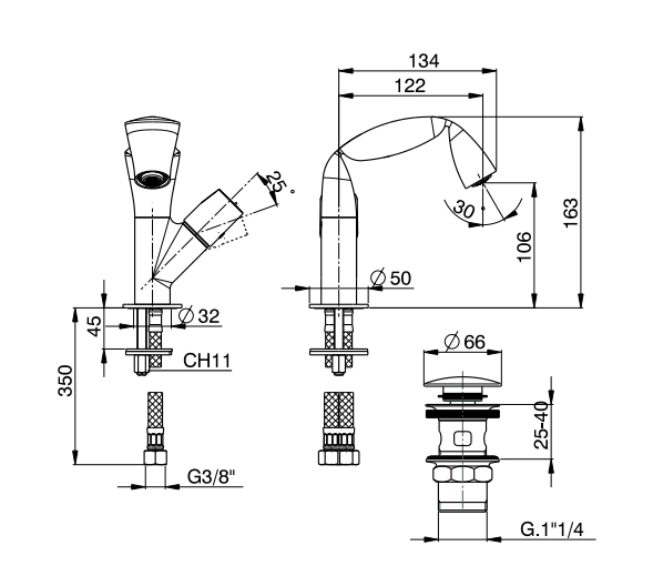 MONOMANDO LAVABO FOLD FLAMINIA Ref.FL3050