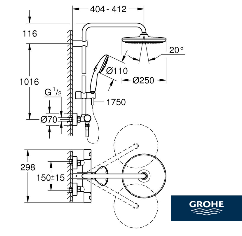 COLUMNA DUCHA TERMOSTATICA TEMPESTA SYSTEM 250 GROHE Ref.26670001