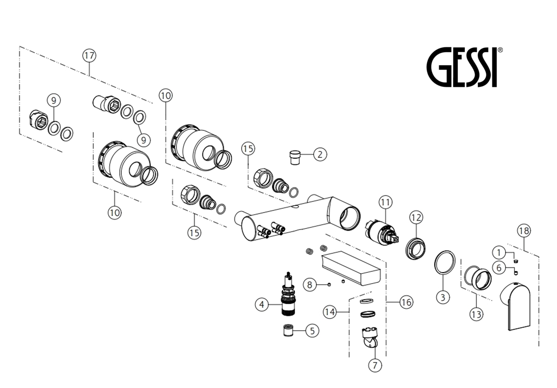 RECAMBIOS MONOMANDO BAÑO-DUCHA VIA MANZONI GESSI Ref.38613