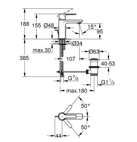 Monomando de lavabo 1/2" LINEARE GROHE Ref.32109001