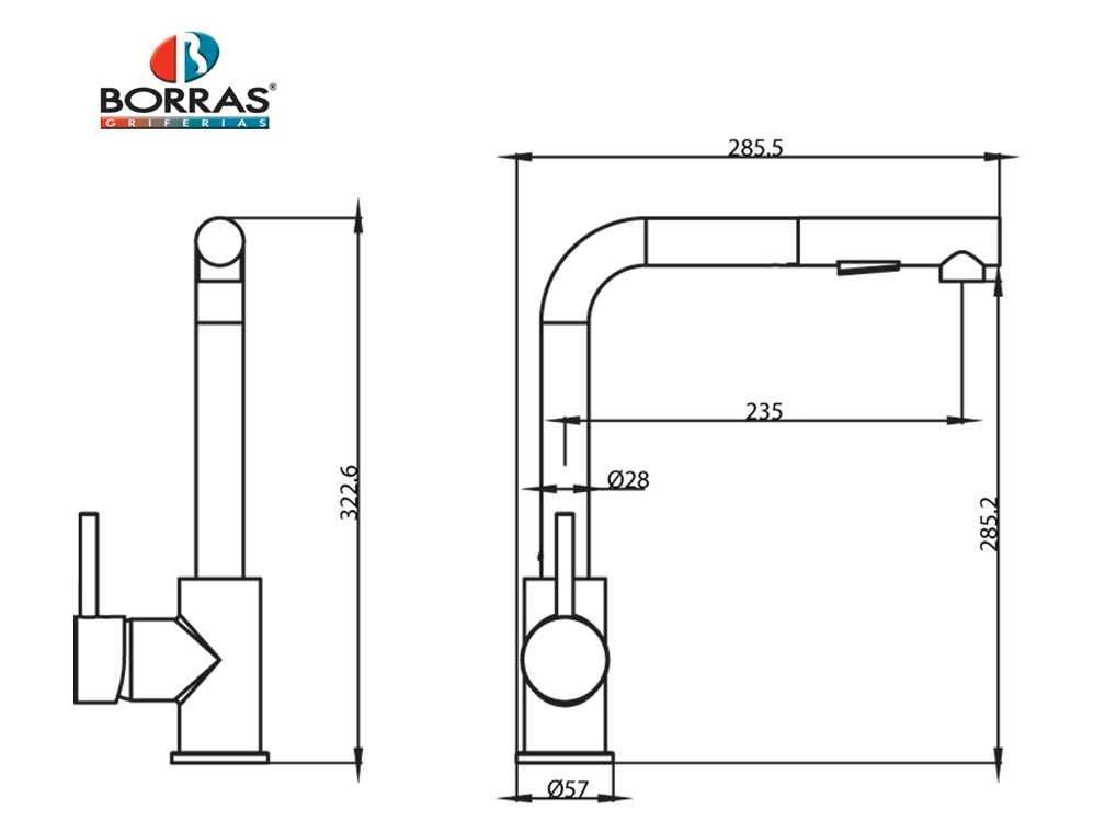 MONOMANDO COCINA CAÑO EXTRAIBLE BORRAS