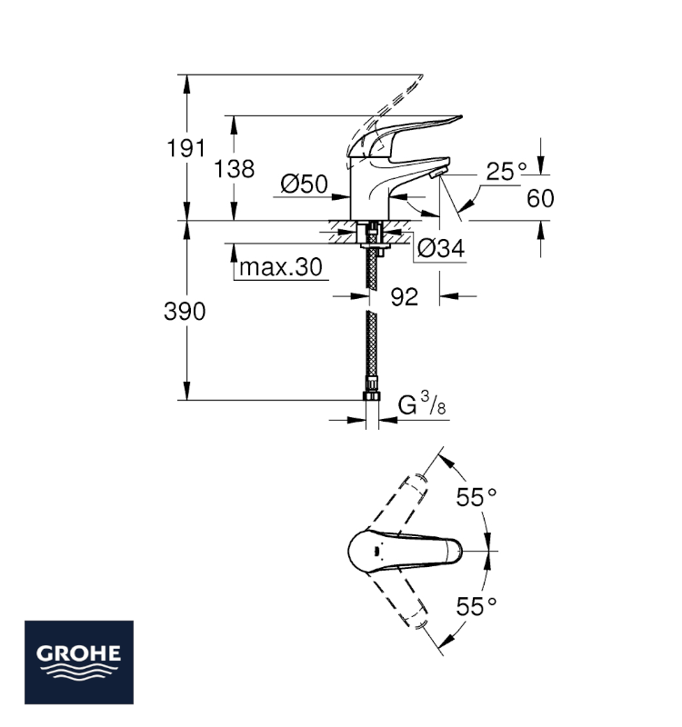 GROHE EUROECO MONOMANDO GERONTOLOGICO LAVABO
