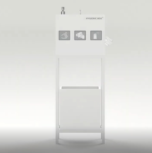 Hygienic Box contempla tres compartimentos para líquido desinfectante, papel y guantes, dando así la posibilidad de tener los productos necesarios en una sola caja higiénica.