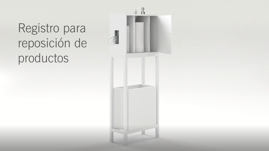 El acceso para la reposición de productos es cómodo y fácil, diseñado para su colocación a pared, de pie sobre una peana metálica o apoyada sobre una superficie como mesa, mostrador, recepción, etc,...