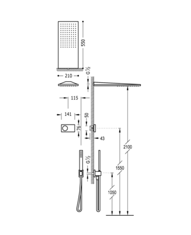 Rociador ducha INOX a pared 210x550mm ref.29990302