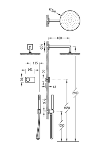 TRES GRIFERIA KIT SHOWER TECHNOLOGY 2 VIAS