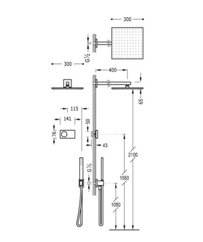 TRES GRIFERIA KIT SHOWER TECHNOLOGY 2 VIAS