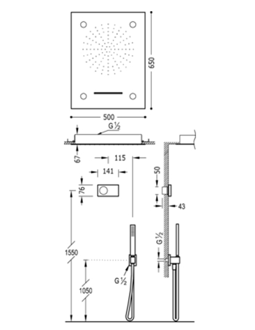 Rociador ducha INOX a techo con cascada 500x650mm, 3 funciones Ref.299.972.01 con CROMOTERAPIA