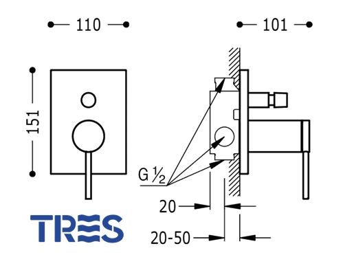 TERMOSTATICA BAÑO DUCHA EMPOTRADA MONO TERM TRES Ref.20118001