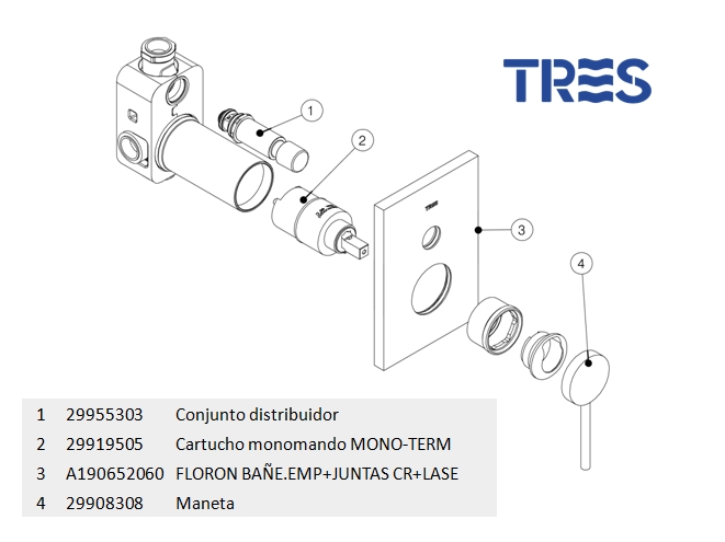 TERMOSTATICA BAÑO DUCHA EMPOTRADA MONO TERM TRES
