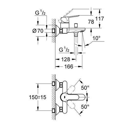 Monomando de baño y ducha 1/2" BAUEDGE GROHE Ref.23334000