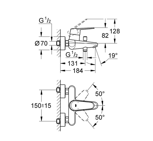 Monomando de BAÑO-DUCHA 1/2" EURODISC GROHE Ref.33390002