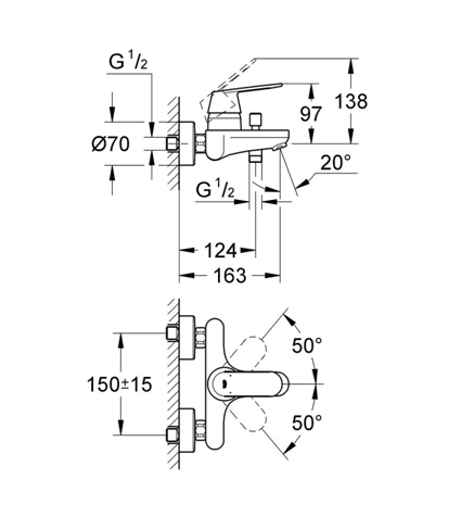 Monomando para baño y ducha 1/2" EUROSMART COSMOPOLITAN GROHE Ref.32831000