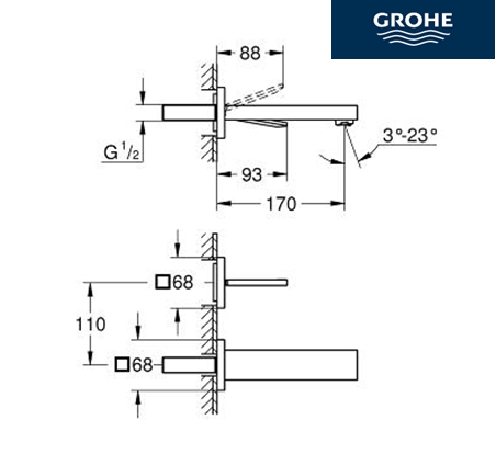 Monomando de lavabo mural 1/2" EUROCUBE GROHE Ref.19997000