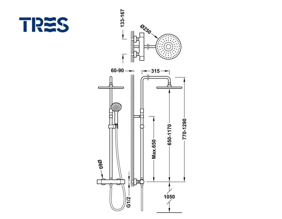 TRES CANIGO COLUMNA DUCHA TERMOSTATICA