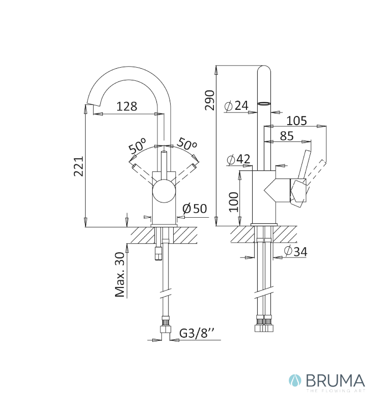 BRUMA LUSITANO MONOMANDO LAVABO CAÑO ALTO