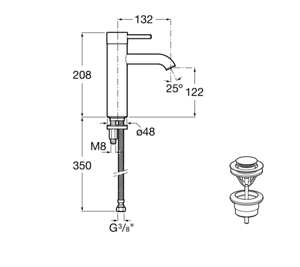 MONOMANDO LAVABO caño MEZZO LANTA de ROCA Ref.A5A3C11C00