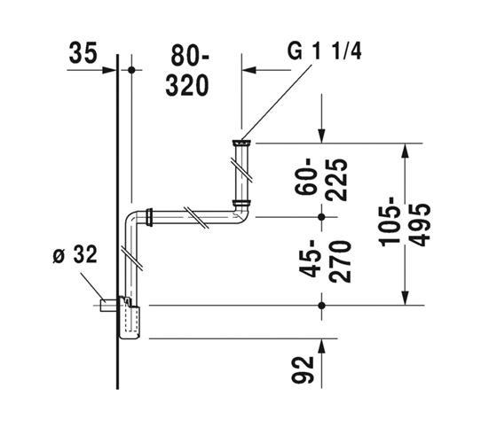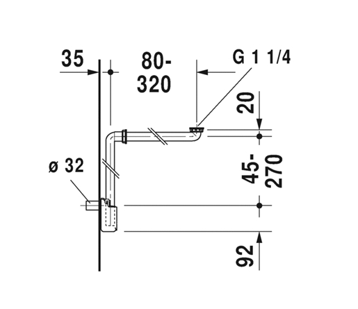 SIFON LAVABO 1"1/4 AHORRADOR DE ESPACIO DURAVIT Ref.0050760000