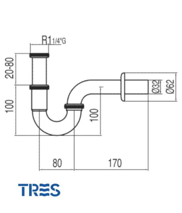 SIFON CURVO ARTICULADO PARA LAVABO TRES Ref.13463810