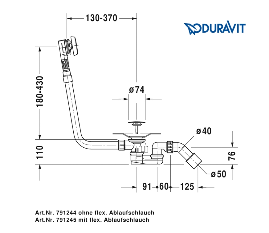 VALVULA AUTOMATICA y REBOSADERO QUADROVAL BAÑERA DURAVIT