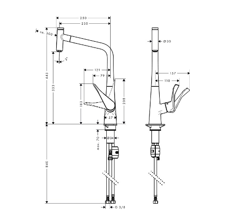 MONOMANDO COCINA EXTRAIBLE METRIS SELECT M71 HANSGROHE Ref.14884000