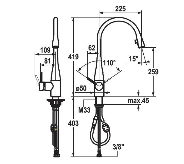KWC EVE MONOMANDO COCINA CAÑO EXTRAIBLE