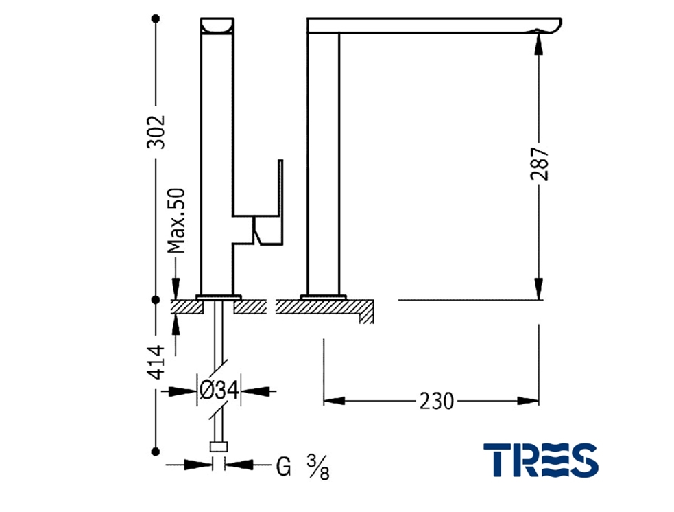 MONOMANDO COCINA VERTICAL LOFT TRES Ref.20044001NE