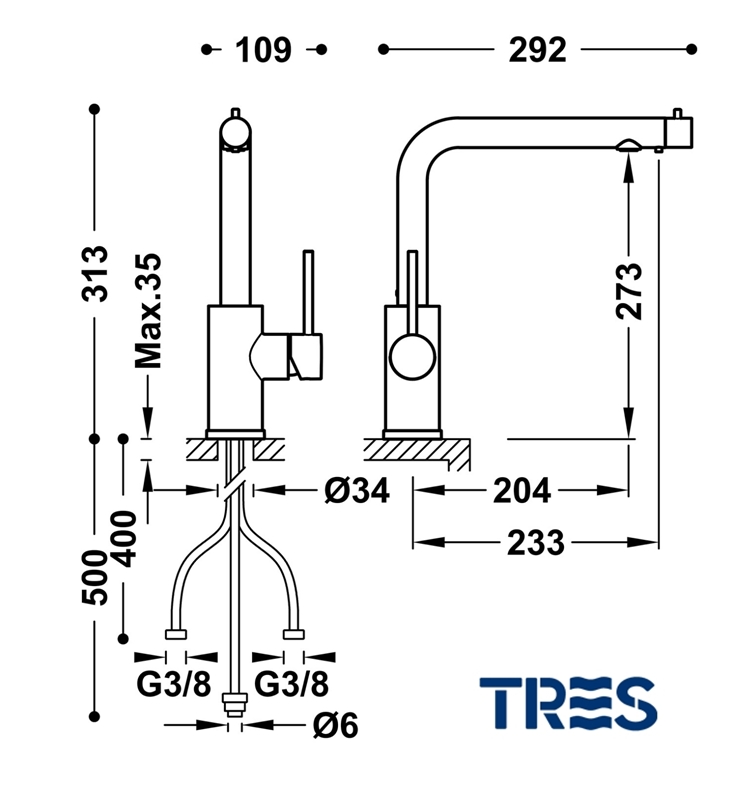 MONOMANDO COCINA VERTICAL TRES Ref.23045303NM