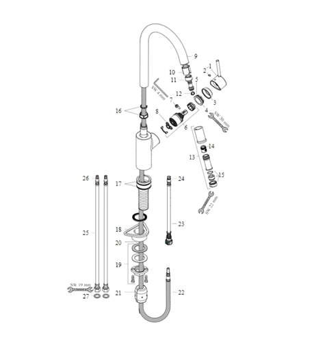 RECAMBIOS MONOMANDO COCINA ABATIBLE TALIS HANSGROHE Ref.14872000