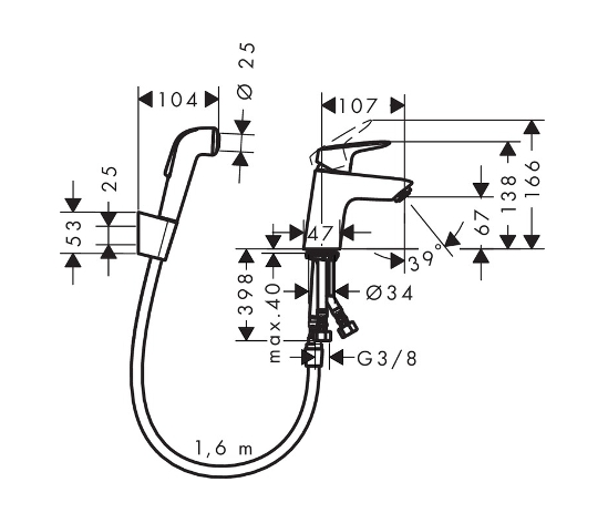 MONOMANDO LAVABO CON DUCHA BIDE LOGIS HANSGROHE