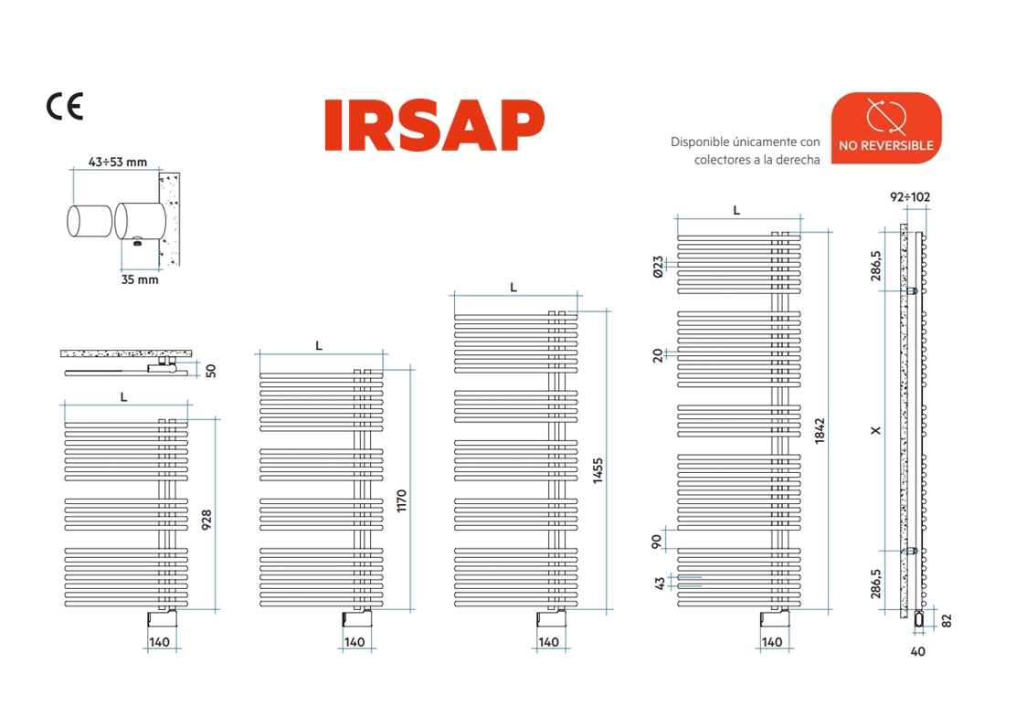 RADIADOR TOALLERO ELECTRICO FUNKY IRSAP Ref.YRS050H01