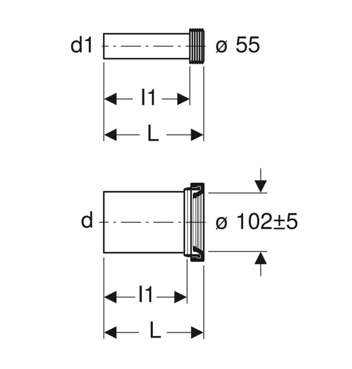 d=90mm; d1=45mm; L=18,5cm; l=14.5cm; l1=16cm