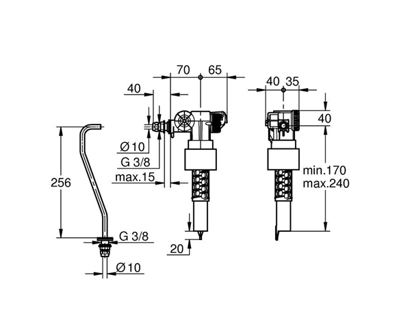 Válvula de llenado universal GROHE para todo tipo de cisternas.