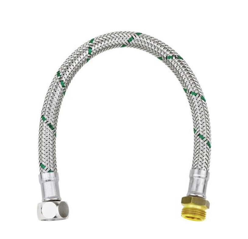 Kit de 2 tubos flexibles 30cm, con conexión de tornillo de ⅜'' para conectar a un sistema de montaje y tuerca de ⅜'' para conectar a la válvula de esquina