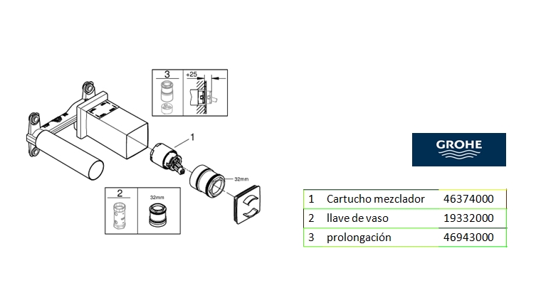 GROHE CUERPO EMPOTRADO MONOMANDO LAVABO MURAL