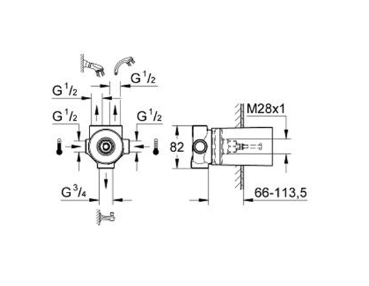 Cuero empotrado INVERSOR 5 VIAS GROHE Ref.29033000