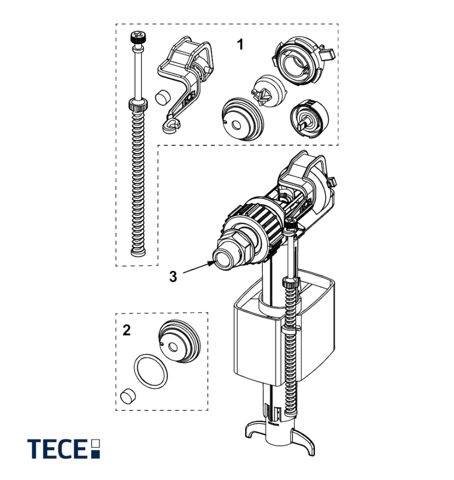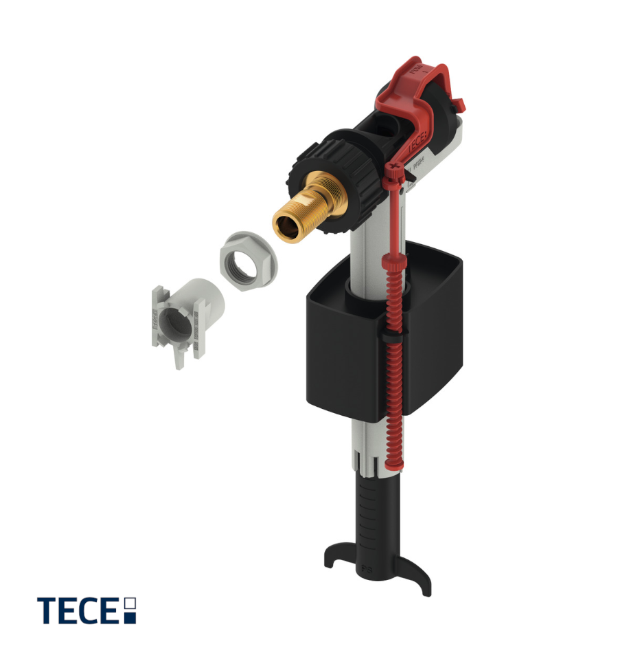 Válvula de llenado universal para la instalación en todas las cisternas TECE, así como en casi todas las cisternas estándar ocultas y empotradas de otros fabricantes.