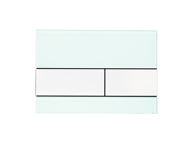 Placa de accionamiento de vidrio plano con dos botones basculantes de accionamiento montados por resorte.