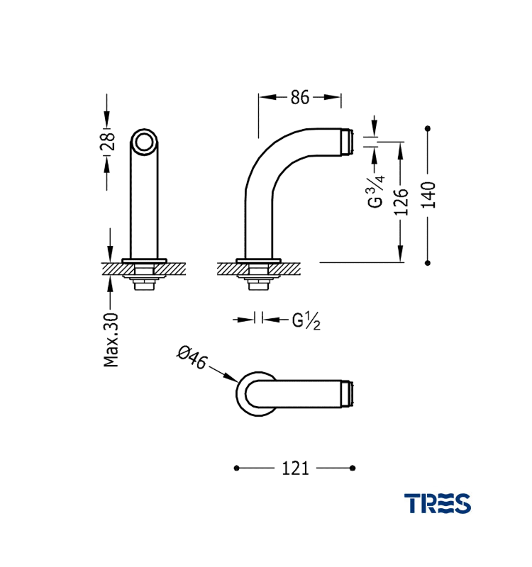 CODO ADAPTADOR BAÑO-DUCHA GRIFERIA TRES Ref. 29987001
