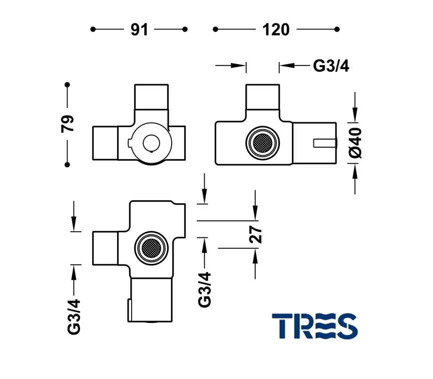 VALVULA TERMOSTATICA OCULTA TRES GRIFERIA Ref.20725001