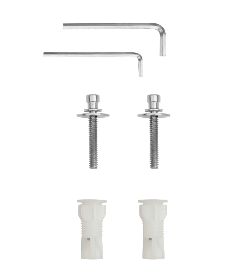 Incluye 2 tornillos de fijación, dos tacos de expanción para la porcelana y dos llaves allen de apriete.