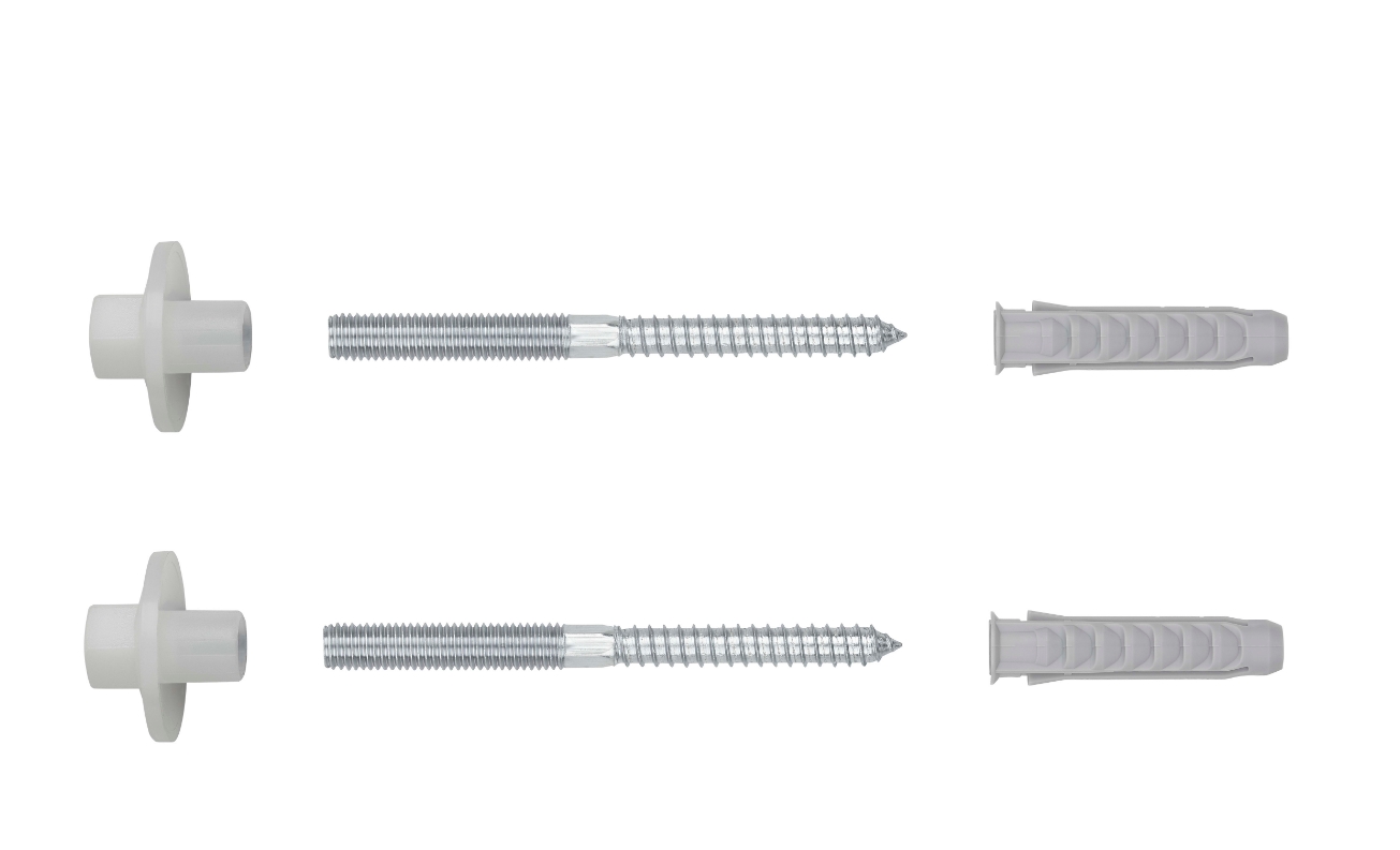 El kit incluye dos tornillos, dos tuercas con arandela integrada y dos tacos de expansión