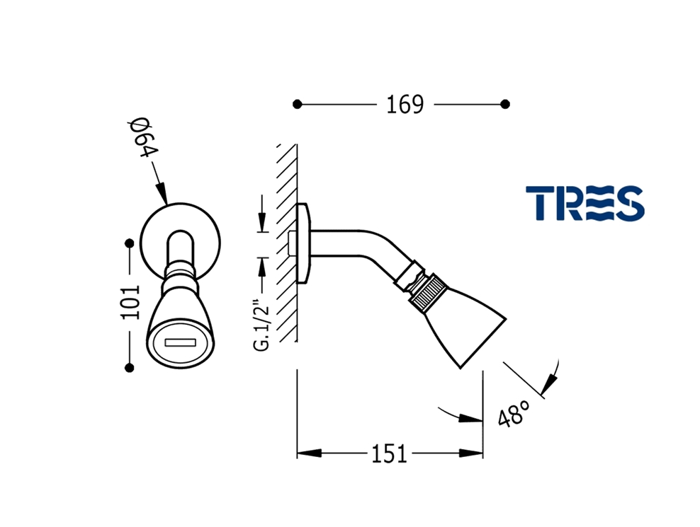 TRES BASIC ROCIADOR DUCHA MURAL