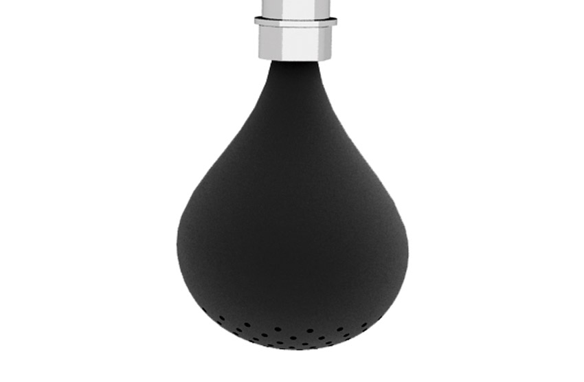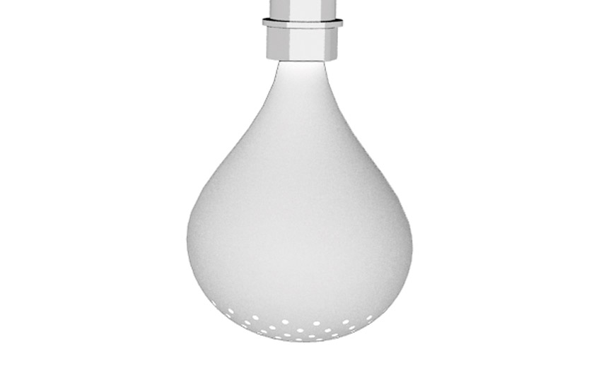 Dentro de la colección de duchas, sin duda es la más especial tanto a nivel formal (imita una gota de agua) como por el material empleado: la silicona, de excelentes propiedades antibacterianas.