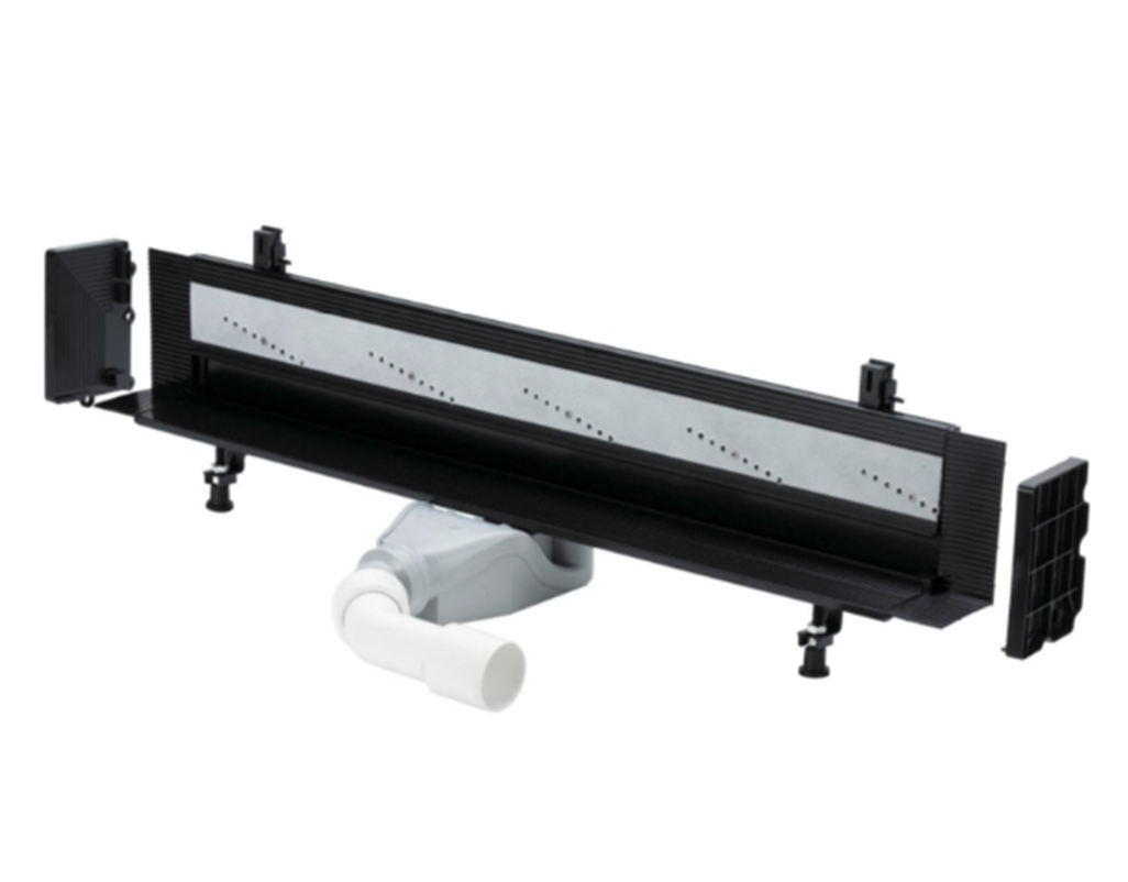 Kit de pies ajustables, 4 tapones, válvula de desagüe autolimpiante, regleta de remate para azulejos de ajuste flexible, elemento filtrante extraíble, protector de azulejo y herramienta de control, cepillo de limpieza, brida de impermeabilización, accesorios de impermeabilización, soporte para cortar a medida
