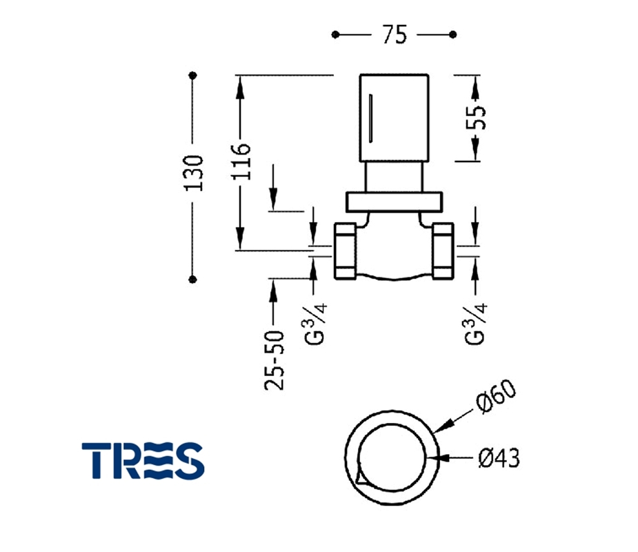 LLAVE DE PASO EMPOTRADA LOFT TRES Ref.06151101