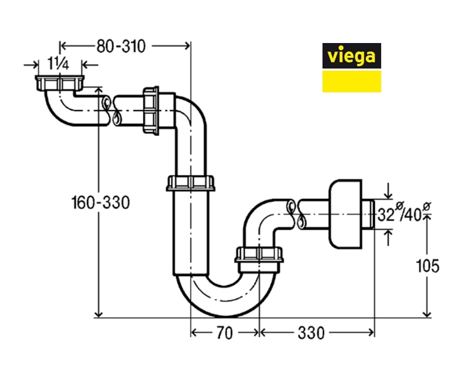 SIFON CURVO de PLASTICO VIEGA Ref.606220