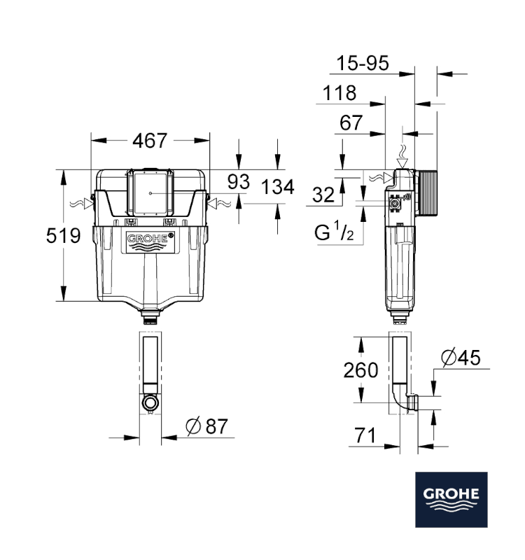 CISTERNA GD2 PARA WC GROHE Ref.38661000